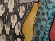 Im abstrakten Bild "African dance" (29,5 x 41,5 cm.)wurden zwei verschiedene Techniken verwendet: Aquarell und Tusche.